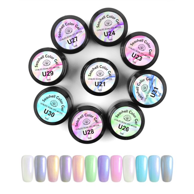 Seashell parel color gel... wie wil deze nou niet?? De structuur is dun en gemakkelijk uit te smeren op je nagel. Je kan de kleur volledig aanbrengen, maar je kan het ook als nailart gebruiken. En...ben je al verliefd? Wij wel, en daarom hebben we ook 12 kleuren voor je! Uitharden onder een uv/led lamp. Let op: dit is een potje en geen flesje. Je hebt een penseel nodig om dit product aan te brengen. Gebruiksaanwijzing: 1. Vijl je nagels 2. Breng primer aan 3. Doe een laagje basecoat op je nagels en hard uit onder de uv/led lamp 4. Breng nu de seashell aan (of eerst een basis kleur die je wenst) en hard uit onder de uv/led lamp 5. Afwerken met een topoat
